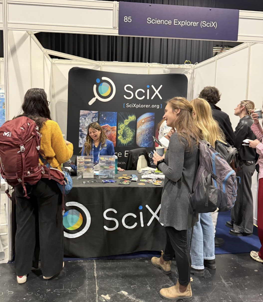 As always, a big highlight for all our booth visitors was the beautiful array of stickers and button badges designed by SciX Lead Ambassador and PhD student at UC Irvine, Yueyi Che. We ran out of our exclusive, hot-off-the-press ocean science button badges before lunchtime on Tuesday, but we had plenty of other scientists for people to collect.